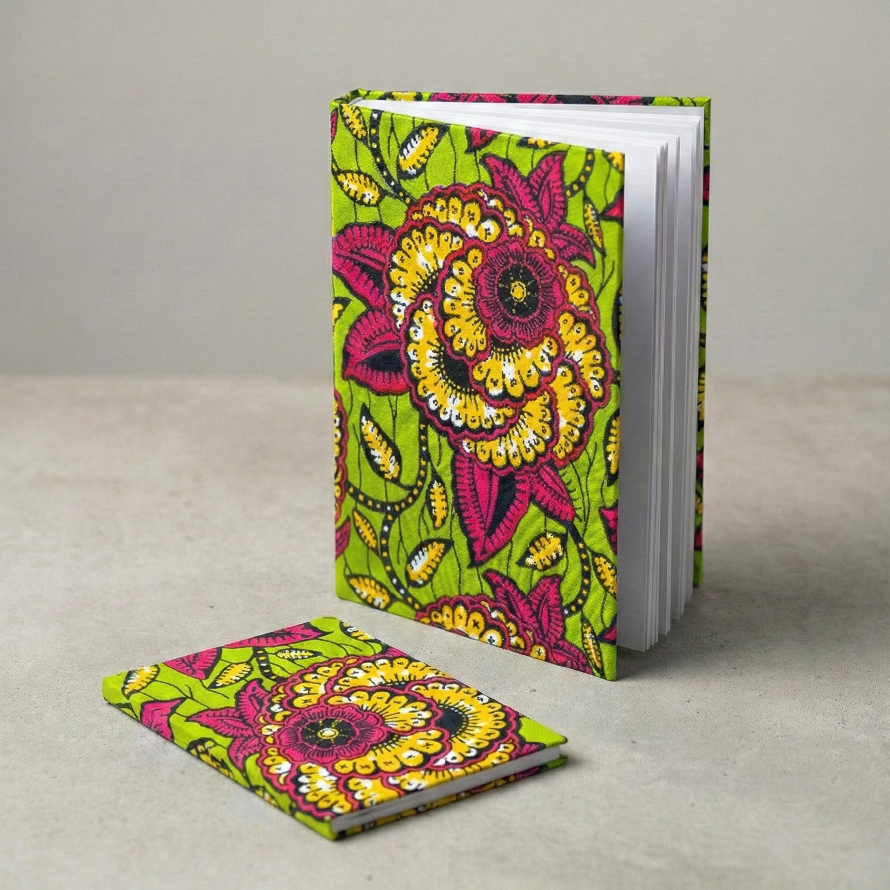 Libreta forrada a mano por artesanos burundeses con tela africana característica de Burundi, para anotaciones o uso personal. Dos tamaños.