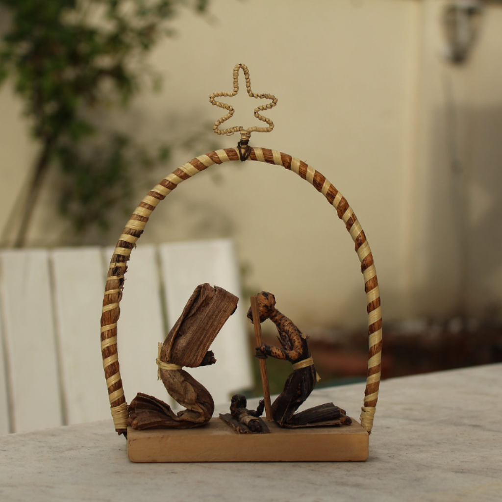 Nacimiento hecho a mano por artesanos burundeses a base de hojas de platanero.